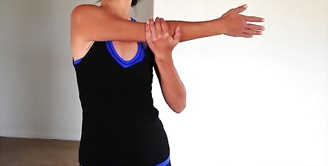 Work on your muscles. Start stretching with your arms. Pull your arms across your chest for 10 seconds, over you head, and back down, then rest for 15 seconds.
