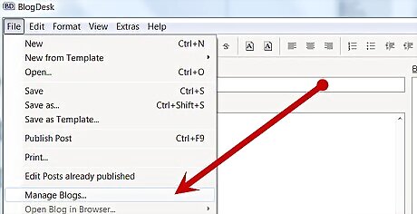 Configure BlogDesk with the appropriate information for your blog or blogs. Click on File >> Manage Blogs...