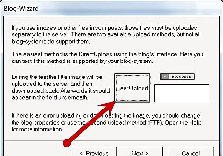 Test the image upload feature. You have the option in the next screen to test it through BlogDesk.