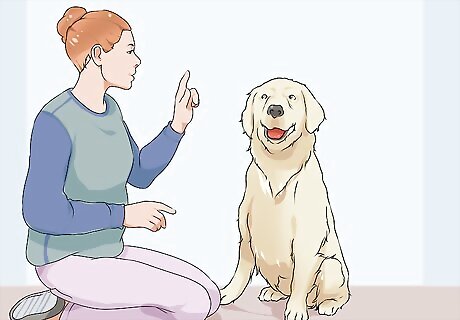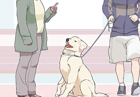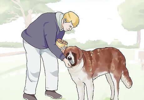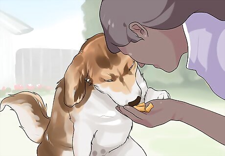 Train your dog. When you train your dog, you work on forming a bond with them. Training also makes it so your dog doesn't frustrate you, which improves the relationship between the two of you. If you train your dog, they have greater freedom to do things with you and your family. They can stay in the room when you eat, go off leash, or go into public with you. Focus on using positive reinforcement, such as treats and ear scratches, to encourage good behavior.