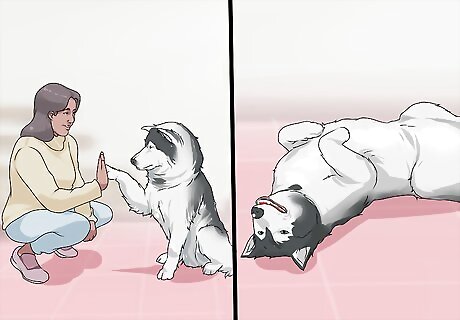 Teach your dog tricks. You can move beyond basic training techniques by teaching your dog tricks. Work on teaching the dog one or two fun tricks. It helps teach your dog obedience and forms a bond between the two of your since you are working together. For example, you can teach your dog how to high five, play dead, or roll over.