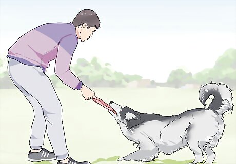 Play with your dog. Instead of giving into your needy dog by coddling or holding then when they whine, interact with them by playing with them. Wait until a time when they are not whining or barking for your attention, then engage with them. Try playing fetch, running together, or playing tug-of-war. Note that tugging games can make some breeds, such as terriers, overly excited. You should do this every day. However, you don't have to play with them all day, every day. Doing this may make them more needy. Instead, have structured time each day for playing with your dog.