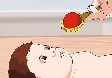 Play with your baby. You can bond with your baby by playing with them throughout the day. Even if you’re not up to playing with them all the time, you can try to play with your baby at least once a day. Even if it’s just for a few minutes each day, the contact will help you start to form a bond. You can use rattles and other baby toys, play peek-a-boo, or other games that will be entertaining for you and your baby.
