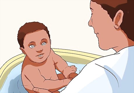 Take care of your baby’s hygiene. You can start forming a bond with your baby by taking an active part in the daily tasks that need to be done for them. This allows you a chance to spend time with your baby, touch your baby, and grow accustomed to them. Give your baby a bath. Change your baby’s diapers.