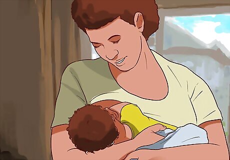 Feed your baby. Make time to feed your baby throughout the day. Even if you aren’t up to doing it each time, try to do it at least once or twice a day. Feeding your baby helps promote a bond between the two of you because of the touching, voice recognition, and your baby’s acknowledgement that you are taking care of their needs. If you are able to breastfeed, take this time to bond with your baby. If you have to bottle feed, you can still bond with your baby by touching them and talking to them.