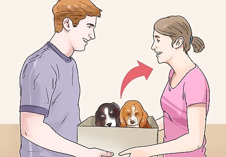 Give the puppies to their new homes. Around eight weeks of age, it will be time to take the puppies away from their mother. Contact the new owners, and let them know that their new puppy is ready to take home.