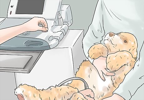 Ask the vet for a pregnancy test. About 30 days after the mating, you can bring your dog into the vet for a pregnancy test. The vet may do an ultrasound, blood test, or abdominal palpitation to screen for pregnancy. Always have the dog’s pregnancy verified by a vet, as dogs can sometimes fake pregnancy. Try to schedule an ultrasound between the 27th and 29th days of gestation.