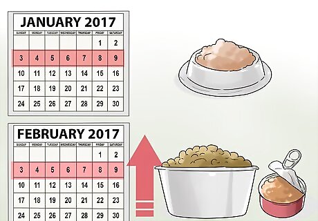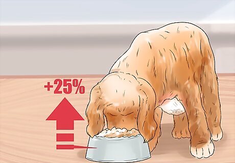 Adjust the mother’s diet. The mother may have no appetite during the first two days after the birth. As she continues to lactate, her appetite will increase. Slowly increase her daily meals. After three weeks, you may be feeding her four times a day to ensure that she has enough energy to feed her puppies. Some recommend feeding the mother an additional 25% of her normal food for every puppy that she is feeding.