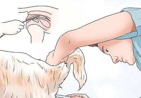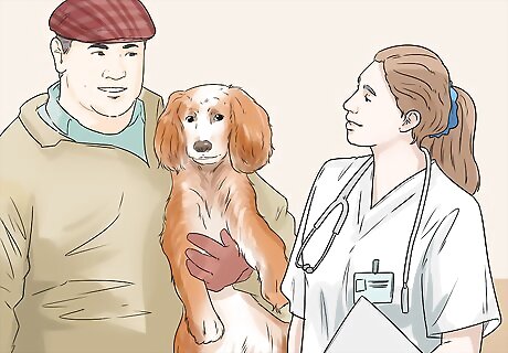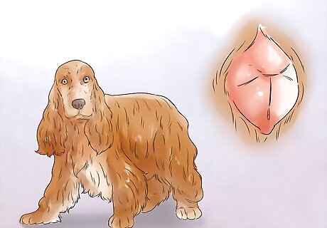 Wait for the female to go in heat. Heat is the period when your female dog is ready to mate. You may notice that your dog is urinating more than usual or that they are leaving behind a bloody discharge. This is a sign that they have started their heat cycle. Do not mate your dog right away. You should wait until you notice the dog going into the second stage of their cycle. This is marked by: Swelling or enlarged vulva Discharge turning from red to clear or brown The dog’s tail moving to the side, instead of tucked under their body The dog giving off a distinct smell meant to attract males If you are uncertain when your dog is ready to mate, the vet can perform either a vaginal smear or a progesterone test to let you know the best window for mating.