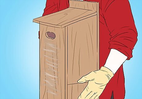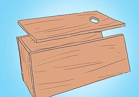 Check that the wood duck nesting box is ready to place outside. When you're happy with it, place it in a suitable location to attract the local wood ducks. Ducks Unlimited advises that a wood duck nesting box is best placed on a wooden post or a metal pole designed with predator guards. Boxes placed on posts in water should be about 5 feet (1.52 meters) above the water's surface. Boxes may be placed in woodlands areas up to one-half mile from water in trees or on a post at least 8 feet (2.4 meters) high, but preferably 20 feet (6.09 meters) high. To reduce the chances of predation, they should be 30 to 100 feet (9.14 meters to 30.48 meters) from the water's edge. Keep in mind to place the box: Near suitable brood habitat; Near shallow, fertile wetlands with thick cover; and Where there is a plentiful supply of invertebrates for eating. Don't forget to add a 4" (10.16 cm) layer of wood shavings for the nesting material. Suitable shavings include "chain saw" wood chips (or cedar wood chip bedding such as found in pet stores).