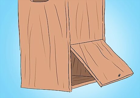 Make an access point. One of the side parts should be cut to provide access for cleaning out old nesting material. Hinges can be used, but it is cheaper to simply use well placed nails (near the top of the opening board) as a pivot for the door. NOTE: The board in this example was cut at a 20 degree angle to prevent rainwater leakage into the box (water doesn't like to run up-hill).