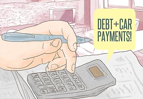 Choose a car you can afford. During the bankruptcy process, you should have taken a hard look at your income and expenses. You will need to limit yourself to cars that can be paid for within that budget. Be sure to include gas, insurance and maintenance costs in your budget. You will need to look for a used car. Visit your local car dealerships, and read Consumer Reports and Online Dealer Ratings and Reviews. Try to find a car under $15,000 that is in good working condition with relatively low mileage. Always ask for the vehicle's full history report, which will allow you to examine the maintenance record. If you do not know about cars, ask a friend or family member who is knowledgeable to examine it. Try to save as much cash for the purchase as possible. Paying for some (or ideally, all) of the car in cash not only reduces your debt, but it also reduces your interest payments and could also possibly reduce your interest rate since a larger down-payment means less risk for your lender. For more information on calculating driving expenses, see how to calculate the cost of driving.