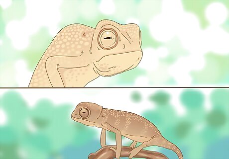 Purchase a captive-bred chameleon. Compared with wild-caught chameleons, captive-bred chameleons are healthier, less stressed, and less likely to carry a heavy parasite burden. In addition to having more parasites, wild-caught chameleons are usually more dehydrated than those that are captive-bred. It is illegal to capture and transport wild chameleons. Shipping wild chameleons can result in shortened lifespans in captivity and increased rates of mortality during shipping. A reputable pet store or chameleon breeder should not be involved in the capture or transport of wild chameleons. Wherever you purchase your chameleon, verify that he was bred in captivity and not captured in the wild. Among chameleon species, veiled chameleons and panther chameleons are most likely to be captive bred.