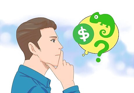 Determine if you are ready to buy a chameleon. Chameleons can be relatively high-maintenance animals. Before you buy a chameleon, determine if you are ready to make the commitment to own one. You can start by learning what it costs to own a chameleon—one year of care (e.g., food, supplies, veterinary care) can cost between $900 and $1200. Look at your current budget to see if you can factor in an extra $100 per month for chameleon care. A chameleon’s cage can take a fair amount of energy to set up and maintain. For example, the humidity and temperature of a chameleon’s cage should be monitored on a daily basis. The cage also needs to contain plenty of branches foliage that the chameleon can respectively climb and munch on. Consider talking with a chameleon expert or someone who owns a chameleon to have a better idea of what is involved in owning and caring for a chameleon.