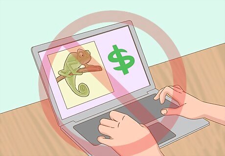 Do not purchase a chameleon through the mail. You should avoid a mail-order purchase of your chameleon for several reasons. First, chameleons tend not to fare well when shipped. Shipping is very stressful for them, which could cause them to get very sick (or even die) during transport. Also, ordering a chameleon through the mail does not allow you to see him before he gets to you. You may not know until it is too late that he is sick or injured.