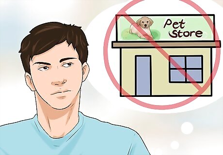 Avoid getting a lab puppy at a pet store. Sold as Labrador Retrievers, cross-bred dogs or poorly-bred Labs are commonly found in pet stores. Quite often, pet stores get puppies from puppy mills who breed indiscriminately and without regard for the health or quality of the dogs. The breeding pairs, particularly the dams, are housed in poor conditions and the puppies rarely socialized. Some states are cracking down on puppy mills and the pet stores that buy from them, but the practice is still quite common. Be forewarned that buying from a pet store encourages the puppy mill problem and increases the likelihood of problems for you later. Some pet stores offer space to rescue groups for adoption events, this is a different situation entirely and should be encouraged. Once again, it's best to see a puppy while it is still with its mother and litter mates. This will show you that the dog was not breed in a puppy mill or other horrible conditions.