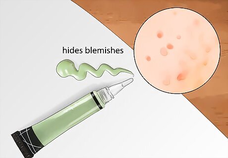Use green-toned concealer for covering acne and blemishes. Most green-toned concealers come in sticks, but they can also be found in concealer palettes. This color is used on acne and blemishes mostly because it successfully cancels out red color. However, green-toned concealers should only be applied on problematic areas, not the entire skin.