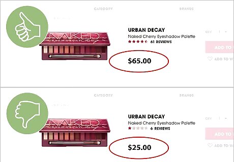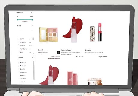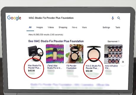 Compare prices on different sites to find the lowest one. Never buy the first thing you see, even if you know exactly what you want, like a very particular brand of mascara. Do an online search for the specific brand and product you're interested in and check what other retailers sell it, along with their prices. Shopping around prevents you from paying more for something that you could have gotten for less. If you use Google Chrome, install a price comparison extension, like ShopGenius or Honey, which will automatically compare prices across sites for you.An exception: Don’t buy the cheapest version of your cosmetic if the website looks sketchy or if the prices seems unrealistically low.