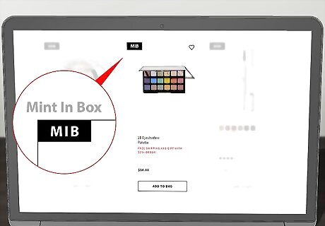 Check auction sites for discontinued cosmetics. If you have a favorite product that’s been discontinued, like a specific scent of perfume or lipstick color, search for it on an auction site. Look for listings that specifically say “MIB” or “mint in box,” which means the items has never been used. If you find the product you want, but you think the price is too high, type the price you think it’s worth, like $8.50, for example, into the box on the page to bid on it.