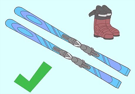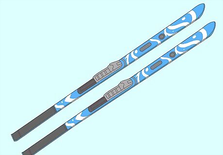 Buy new if you're a beginner. New skis are a good idea for most skiers, but especially if this is all new to you. Since skis can wear easily and require some basic upkeep, starting out with new ones will guarantee that you're getting the most out of your equipment. When you buy new you can also make sure you get the boots, bindings and poles to match. Regardless of whether you decide to buy new or used, it’s a good idea to inspect the equipment first and to try them on before you finalize your purchase. Buying used skis could be a good option for you if you find a pair in your size that suit your needs. Look for wear on the edges and tops of used skis. Don’t invest in equipment with gouges or excessive chipping as this could be a sign of internal water damage.