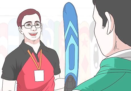 Support a local ski shop and buy in-store. Skis are easy to find online or in-store at specialty sporting goods and ski shops. Buying your skis in person is the best option, especially for beginners, because you'll benefit from the expertise of the ski shop staff. In-store purchases will make it easy for you to try out the equipment first and you'll be supporting a local business, too. If you don't have access to a ski shop near you, then buying online is your next best option. When buying online, use your height and weight measurements to estimate the best size. Make sure you'll be able to return or exchange any equipment that doesn't fit as you expected.