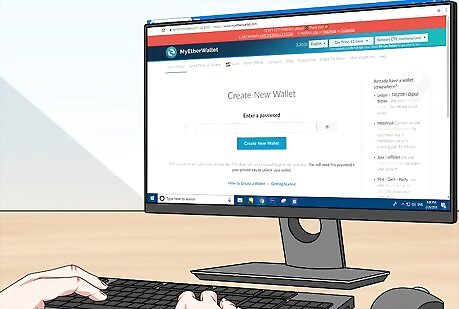 Choose an online or web wallet for easy access. An online wallet lets you access your currency from any computer because it's stored in the cloud. However, security is not as robust because your private keys can be hacked. You have to trust the security measures of the host. MyEtherWallet is a very popular web wallet. When you navigate to the main page of MyEtherWallet, https://www.myetherwallet.com/, create a password, and then click on "Create a New Wallet." Download the Keystore file, where you will store your private key. The wallet will give you a private key, which is a long string of letters and numbers. Unlock your wallet so you can see your public address, also known as your account address. Click on the option "Keystore File" on the list. Down below, find your wallet. Copy your public address, and save it on your computer.