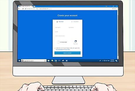 Create a secure account. Enter your name (as it looks on your ID), an email, and a password. Upload a picture of your identification, as well. You must also give them a phone number, and a debit card, credit card, or bank account. A bank account is slower to get verified, but it doesn't come with the fees of the credit or debit card. Exchanges like Coinbase are known for their security, which is why you must verify yourself. It's regulated like a US bank.