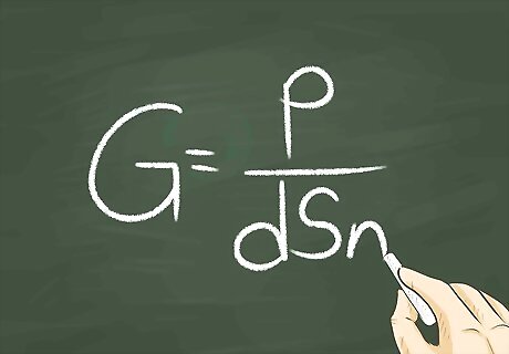 Figure out the shear modulus. Shear modulus expresses the strength of the material when external force is applied in the perpendicular direction, producing strain. The external pressure p (force times area over which the force is applied, expressed in MPa) applied to the material equals the dilation (a unitless number) times the shear modulus G (expressed in MPa). As p = G times dSn, the bulk modulus G is determined as p divided by dSn.