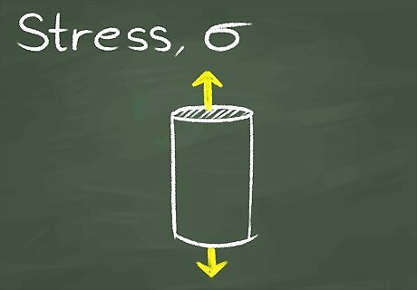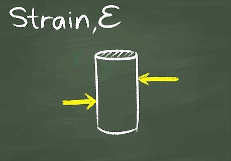 Understand that material strain is caused by shearing force perpendicular to the axis of the material. For example, pushing on the middle of a tennis racket string will bend the string due to applied strain.