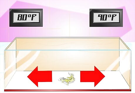 Keep the tank warm. Sandfish Skinks should have a basking area of about 95 degrees Fahrenheit (35 degrees Celcius) and a cool side of 75 degrees Fahrenheit (24 degrees Celsius). The rest of the tank should be between 80 and 90 degrees Fahrenheit (27-32 degrees Celsius). At night, the temperature should be between 75 and 80 degrees Fahrenheit (24-27 degrees Celcius).