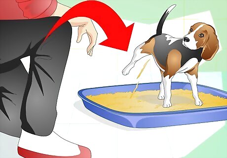 Potty train your dog. In order to keep you and your dog healthy and happy, you need to potty train him. It takes patience, time, and continued work. You need to set up a feeding and walking routine and enforcing good behavior when he goes to the bathroom outside. You may also need to paper train him if you live in an apartment. The length of time it takes to potty train will vary depending on your dog. Keep at it and your dog will eventually learn. Keep you dog in a small, easily cleanable area while you are potty training him, such as a bathroom or laundry room.