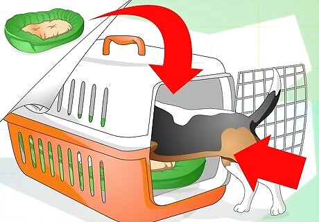 Crate train your dog. A good way to train your dog is with a crate. This can help keep your beagle in a contained area when you aren't around and will help you travel with him. It isn't bad for you dog if he is trained to use the crate correctly. Start by putting the crate with a blanket or bed inside in a place where he is comfortable. Encourage him to come inside with a treat for a few days just to get him inside. After a few days, close the door behind him for 10 minutes at a time. Then, slowly increase it until he is used to it and can stay in there for long periods of time. Make sure you buy a crate that is an appropriate size for your dog. He needs plenty of space to move around and be comfortable. He should be able to stand normally without a hunched back and be able to turn around comfortably while in the crate. The crate does not have to be bigger than this.