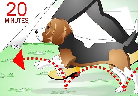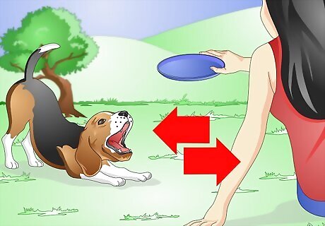 Exercise your dog. Your beagle should be happy and energetic, which means he needs to exercise every day. This includes two walks that last at least 20 minutes a piece. If you beagle is a puppy or elderly, the walks can be shorter at 15 minutes or less. You can also play interactive games with your beagles, such as fetch or Frisbee.
