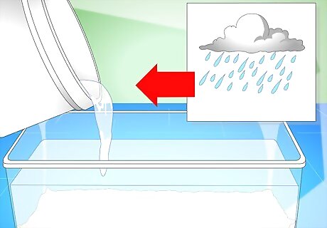 Keep temperatures consistent. If you can, remove only about 1/3 of the water from the tank as you clean it. Take care when scooping out the water and refill slowly so that the tadpoles and any material on the bottom does not get churned up. If you need to, create another container with fresh rain water in it and gently scoop up the tadpoles with a cup or net, and deposit them into the new tank. The water you're bringing the tadpoles from should be about the same temperature as the water you're bringing them to. Transitions between different temperature water can result in shock and death.