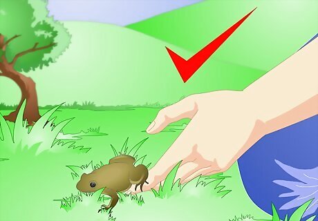 Know when it's time to release your tadpoles. When your tadpoles have developed arms and legs, it's time to let them go back into the wild. Ideally, you'll be able to release your frogs back into the same area from which you took them. If you can't do this, make sure you're releasing them into an area in which the common frog is commonly found. If you aren't sure what variety of frog you've raised, check with an expert before releasing your frogs into the wild. When you've identified your frogs, look at a frog guide to find out what habitat this species of frog typically prefers. Then locate a setting that will meet the needs of your new frogs.