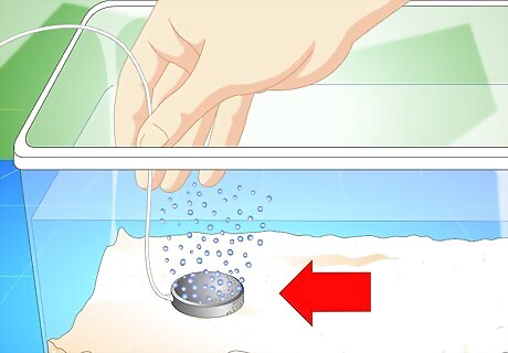 Provide ways to provide oxygen for the tadpoles. The two best ways to do this are to have an aerator which adds air into the water, or to grow leafy plants within the habitat. Good choices of plants are those which grow entirely under the water, have a long, stringy growing habit, and lots of small leaves along the length of the stem. If you will be collecting tadpoles from a stream, having a gentle aerator running in your habitat is a good way to provide oxygen. If you'll be transporting the tadpoles from a stagnant pond, an aerator may be too disruptive.
