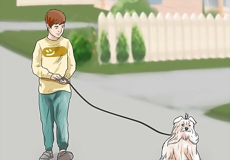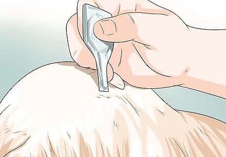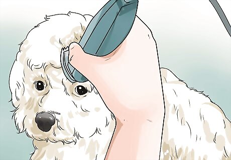 Groom your Shihpoo. Grooming your Shihpoo will depend on his coat type, which could be curly or long and smooth. Brushing your dog daily in order to keep the coat in good order and knot free. This also conditions your dog’s skin. Bathe your dog once a month because Shihpoos can have skin conditions. Trim the genital area on your Shihpoo. The long hair can get urine and feces caught in it. You can also get a groomer to shave the lower area. If the Shihpoo grows long fur on their face, it can get in his eyes and cause irritation or act as a blindfold. Either keep their face trimmed short, or gather the long fur up in a topknot to keep it away from their eyes. Check your dog over after each walk. Look for grass awns that may be lodged in fur around the ears or paws.