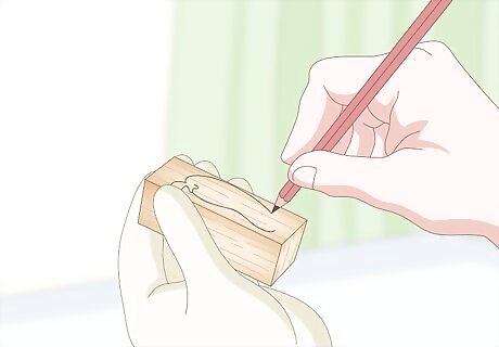 Trace out your design with a pencil before you start to carve. Lightly outline your idea for the design on the piece of wood you want to carve. This will guide you during the process as your piece begins to change shape and help you visualize the final product. The outline doesn’t need to be detailed. It just helps to keep you oriented while you carve away different pieces of the wood.