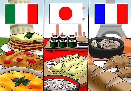 Go with a theme if you're stuck. Maybe the sheer number of dishes that you could possibly pick from makes you feel too daunted to start choosing. Or, maybe too many ideas are coming too fast. Either way, if you feel overwhelmed, come up with a theme for you menu. Narrow your choices down instantly by scratching off any that don't fit that theme. For instance, you could: Highlight the location of your wedding, like having BBQ if it's in Texas or lobster in Maine. Streamline by sticking to just one style of cuisine, like French, Italian, or Japanese. Celebrate your relationship with meaningful foods, like the first meal you shared together.