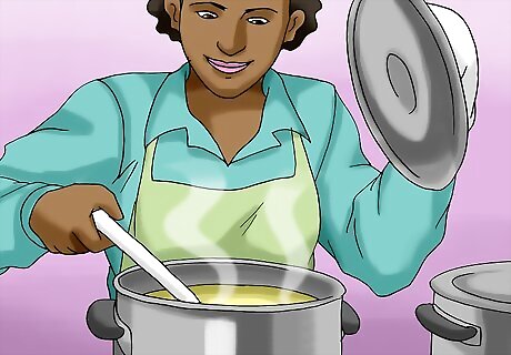 Favor easy-to-make food. Whether you’re planning snacks for an afternoon tea service or a full meal for dinner, remember that you’re cooking in bulk. Avoid complex recipes. Save your master-chef skills for smaller affairs and focus instead on foods that can be easily made, stored, and served. Scratch off any recipes that require lots of: Prep Steps Cookware Constant supervision