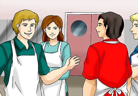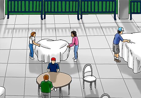 Create a calendar and jobs list. When you sit down with your team, create a detailed list of what needs to be done. Just as importantly, specify when each task needs to be completed by. Then determine who is responsible for doing it. Make sure everyone is clear on the details, especially if the success of one task depends upon the completion of another. This may require some reorganizing. For instance: Let’s say you are the only person with a house and a big kitchen, while everyone on your team lives in apartments with limited kitchen space. Because of this, anyone assigned with actual cooking will use your kitchen while you take care of other things. However, as big as your kitchen is, it isn’t a commercial kitchen. So you still need to schedule assignments in an orderly manner. Therefore, food will have to be made according to how long it can be safely stored. Now let’s say the food that will last the longest is your Aunt Janine’s amazing pasta dish, which can be frozen. But unfortunately Aunt Janine won’t be available in the time allotted for making it. This means you may have to ask her to give the recipe to someone else and take care of another item when she’s finally available later on.