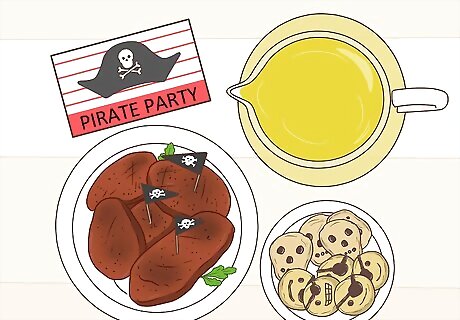 Have a pirate-themed party. Invite your friends over for a party with pirate-themed food like smoked meat, dried biscuits, and pickled vegetables. If it's an adult party, make punch with rum and tropical fruits like pineapple and coconut. Kids can drink pineapple juice or mango juice in the spirit of the tropics.