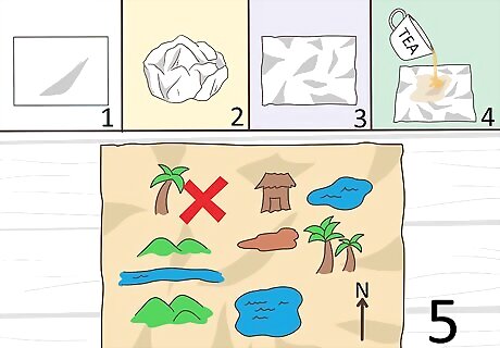 Create a treasure hunt for your friends. Make a map by balling up a white piece of paper until it's very wrinkled, then smooth it out and pour some cold tea over it. Leave it to dry in the sun, then draw a map on it for your friends to find treasure. Bury the treasure in the ground if you have shovels, or consider hiding it under rocks. If you're doing the treasure hunt inside, hide the treasure in a cabinet or drawer to make it trickier to find.
