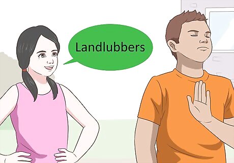 Call your non-pirate friends “landlubbers.” Anyone who refuses to participate in Talk Like a Pirate Day, or who is awkward or unfamiliar with pirate life, is referred to as a “land-lover,” or “landlubber.” For example, if someone says, “I'm not talking like that, it's stupid.” Answer, “suit yourself, landlubber.”