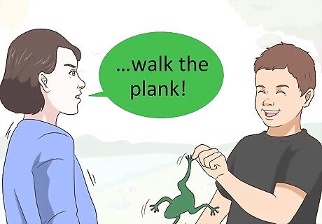 Threaten to make someone “walk the plank” if they cross you. When pirates had to get rid of an enemy, they made them literally walk a plank, or board, off the end of the ship and into the ocean. They would “feed the fishes” or die by drowning. If someone is giving you a hard time, say, “Keep it up and you'll walk the plank by the end of this day.”