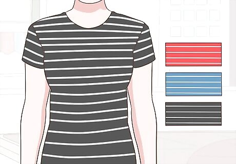 Wear a striped T-shirt. Sailors and other nautical folk often wore striped clothing, and pirates were no different. Find a red and white, blue and white, or black and white horizontal striped shirt to add to your pirate costume. For extra pirate flair, make cuts in the shirt at the bottom and at the edges of the sleeves to make it look tattered.