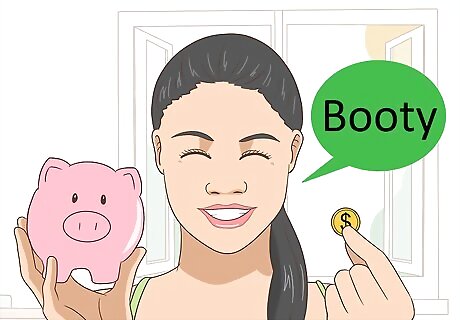 Refer to money or anything valuable as “booty.” Treasure and gold was called “booty” by pirates. If you have real gold or treasure to call booty, do that; otherwise, you can refer to your money as booty while celebrating this day.