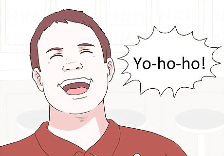 Express joy by saying “Yo-ho-ho!” This expression is actually how pirates often laughed. Respond to a joke or other phrase that makes you happy by yelling “Yo-ho-ho!” in a jolly manner.
