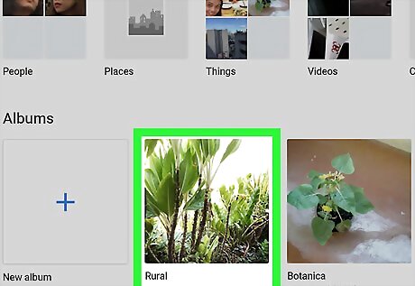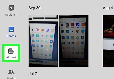 Click the Albums button. This button looks like a Android 7 Album icon on the left-hand side of the page. It will open a list of all your saved photo and video albums.