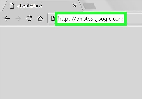 Open the Google Photos website in your internet browser. Type photos.google.com into your browser's address bar, and hit ↵ Enter or ⏎ Return on your keyboard. If you're not automatically logged in, click GO TO GOOGLE PHOTOS and sign in to your Google account.